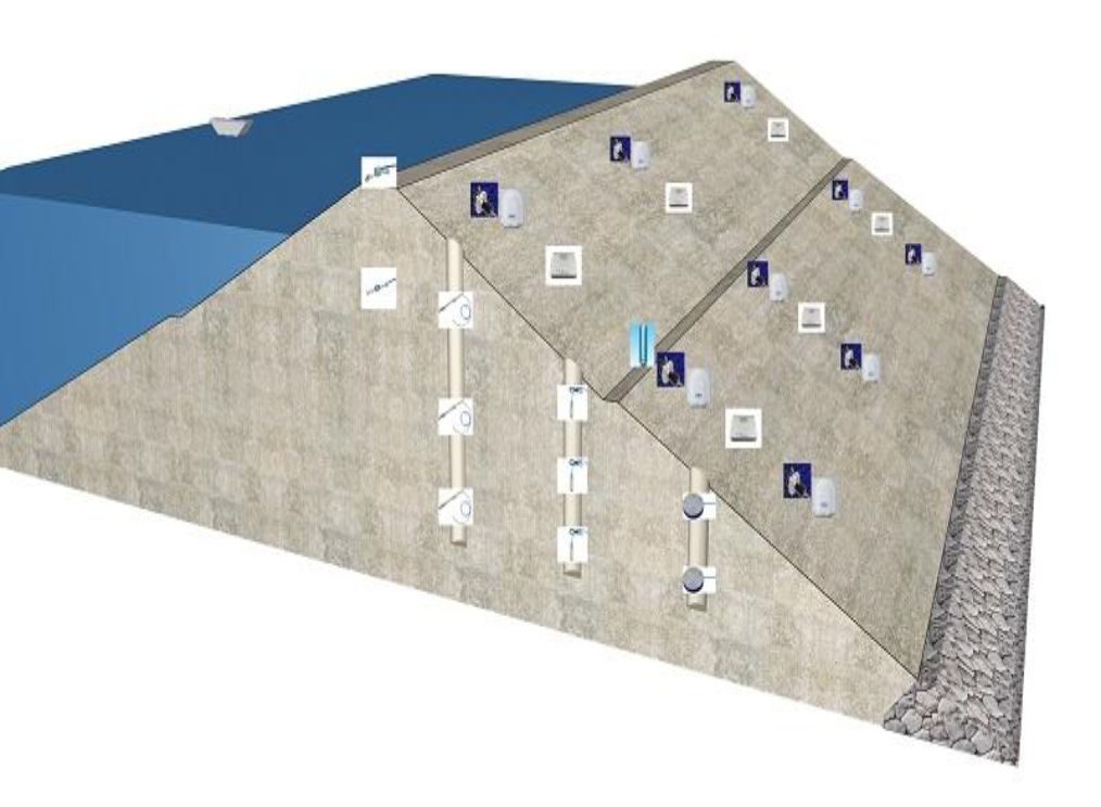 巨维建设水库大坝智能变形监测预警系统主要运用北斗高精度卫星定位系统GNSS、坝体深部位移倾斜监测技术、坝体内部渗流渗压监测技术、库区水位水流监测技术等,结合雨量监测等环境监测设备,在坝体表面和坝体深部设立监测站全天候实时采集水库坝体的位移、沉降倾斜、漫润线、库区水位等各类监测数据:通过设置相应报警阀值,与分级自动发送信息报警等综合手段,对水库大坝进行全天候自动化监测预警。